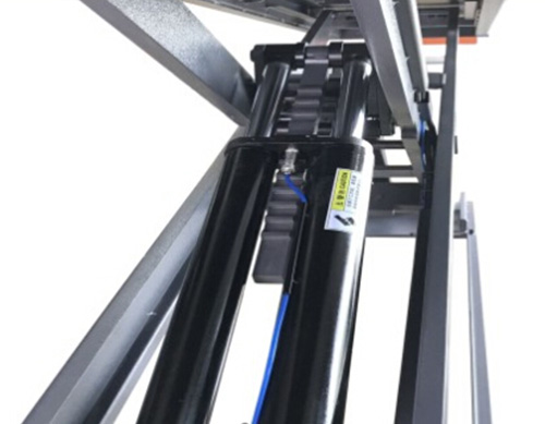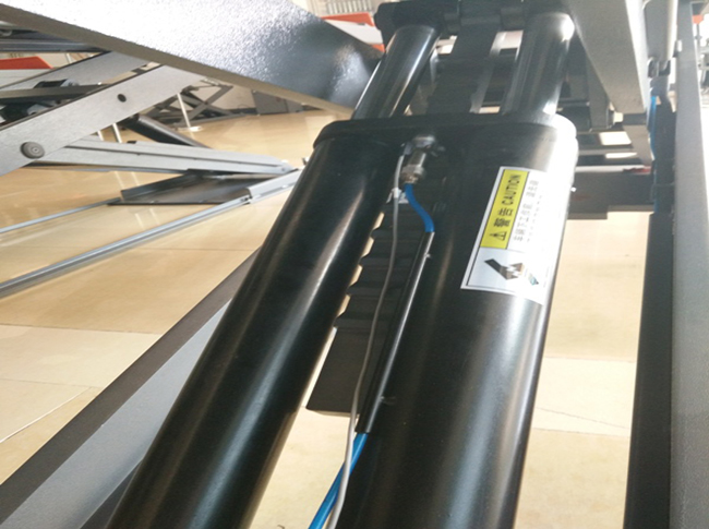 ◆整機(jī)8油缸設(shè)計,液壓同步,雙液壓系統(tǒng)、液壓鎖和機(jī)械三重保險裝置,下降自動解鎖。